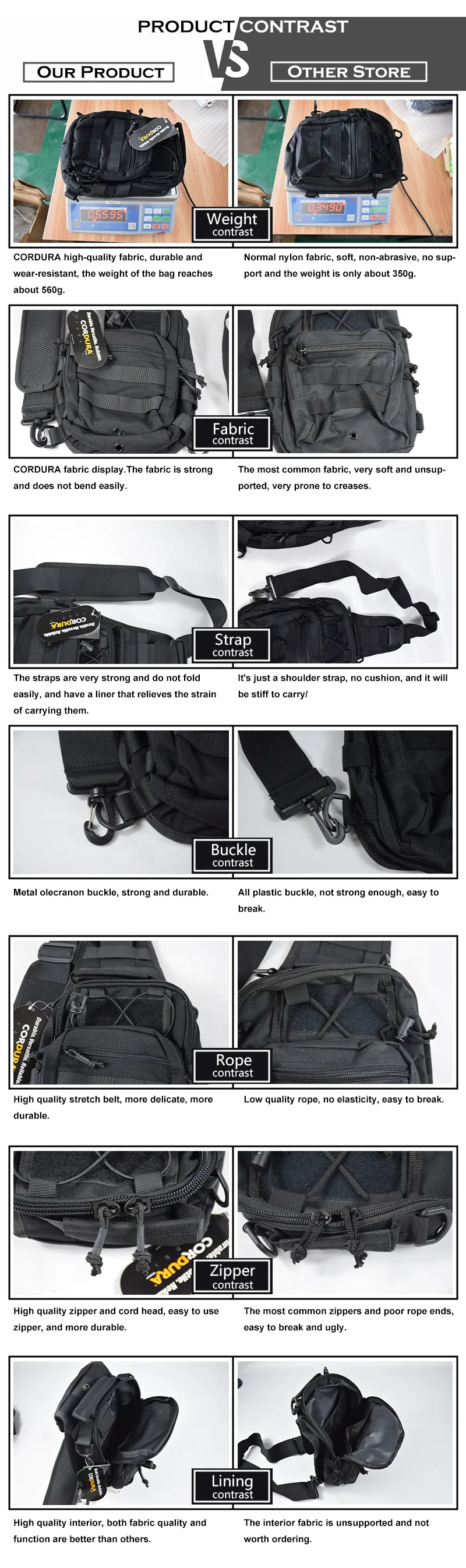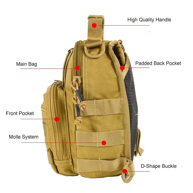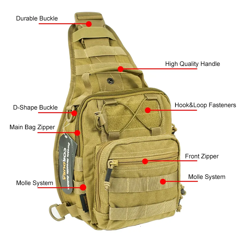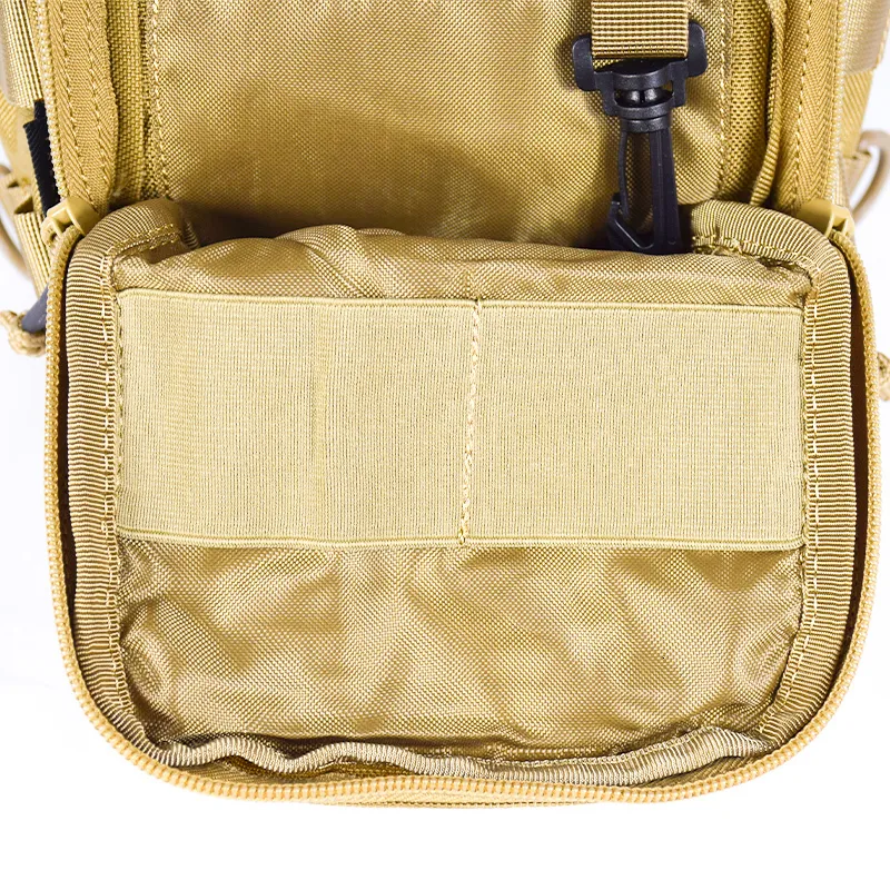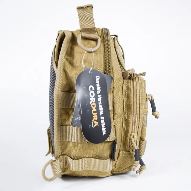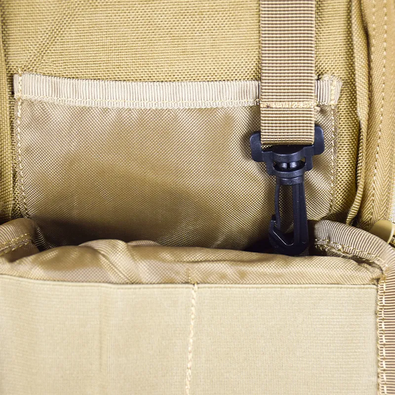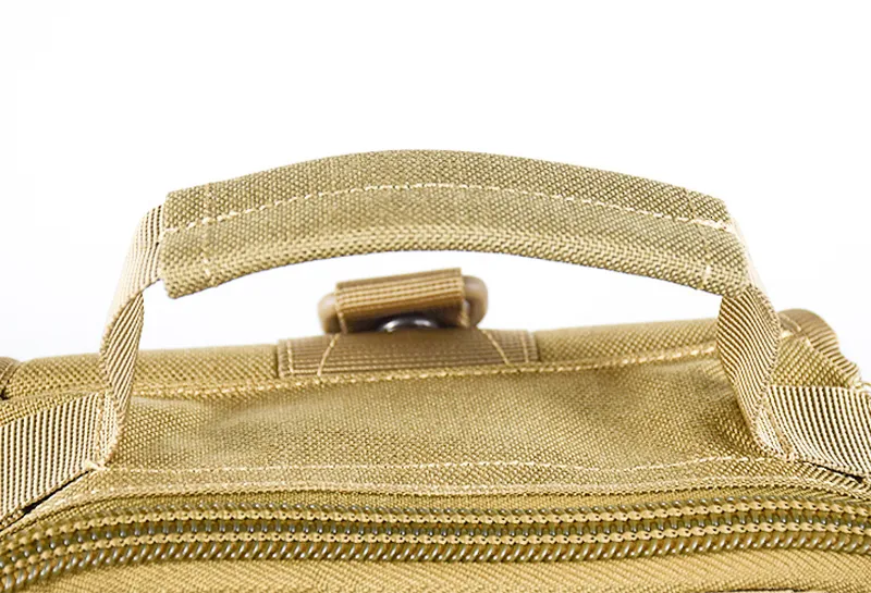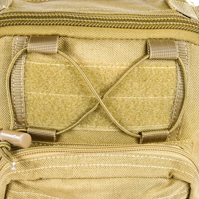 Якісна сумка виконана з кордури 1000D, фурнітура фірми KAM, блискавки SBS. "Бігунки" обладнані паракордом для зручності відкривання. У передньому кишені є карабинчик для ключів, гумки для кріплення, дрібних предметів. Даний рюкзак має систему кріплення додаткових навісних модулів і елементів - M. O. L. L. E. (Modular Lightweight Load-carrying Equipment - Модульне Полегшене Розвантажувальне Обладнання)